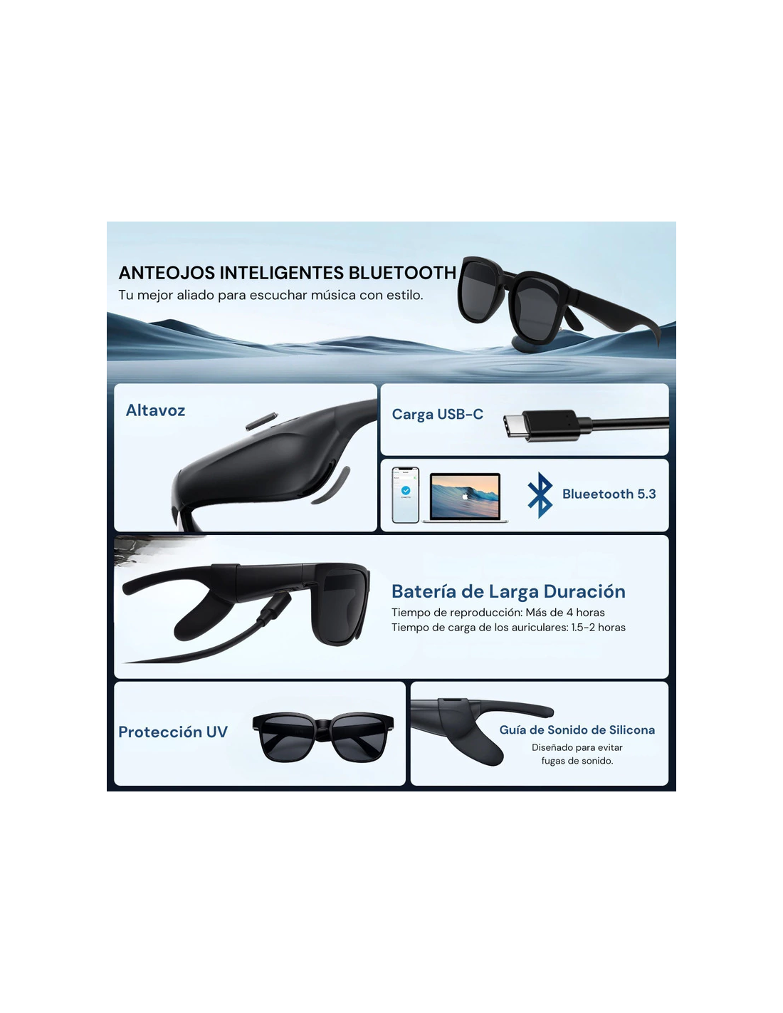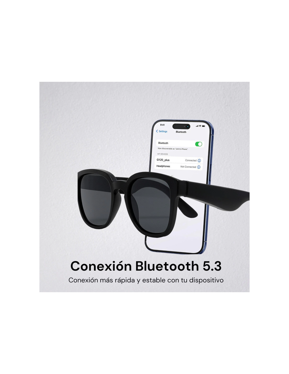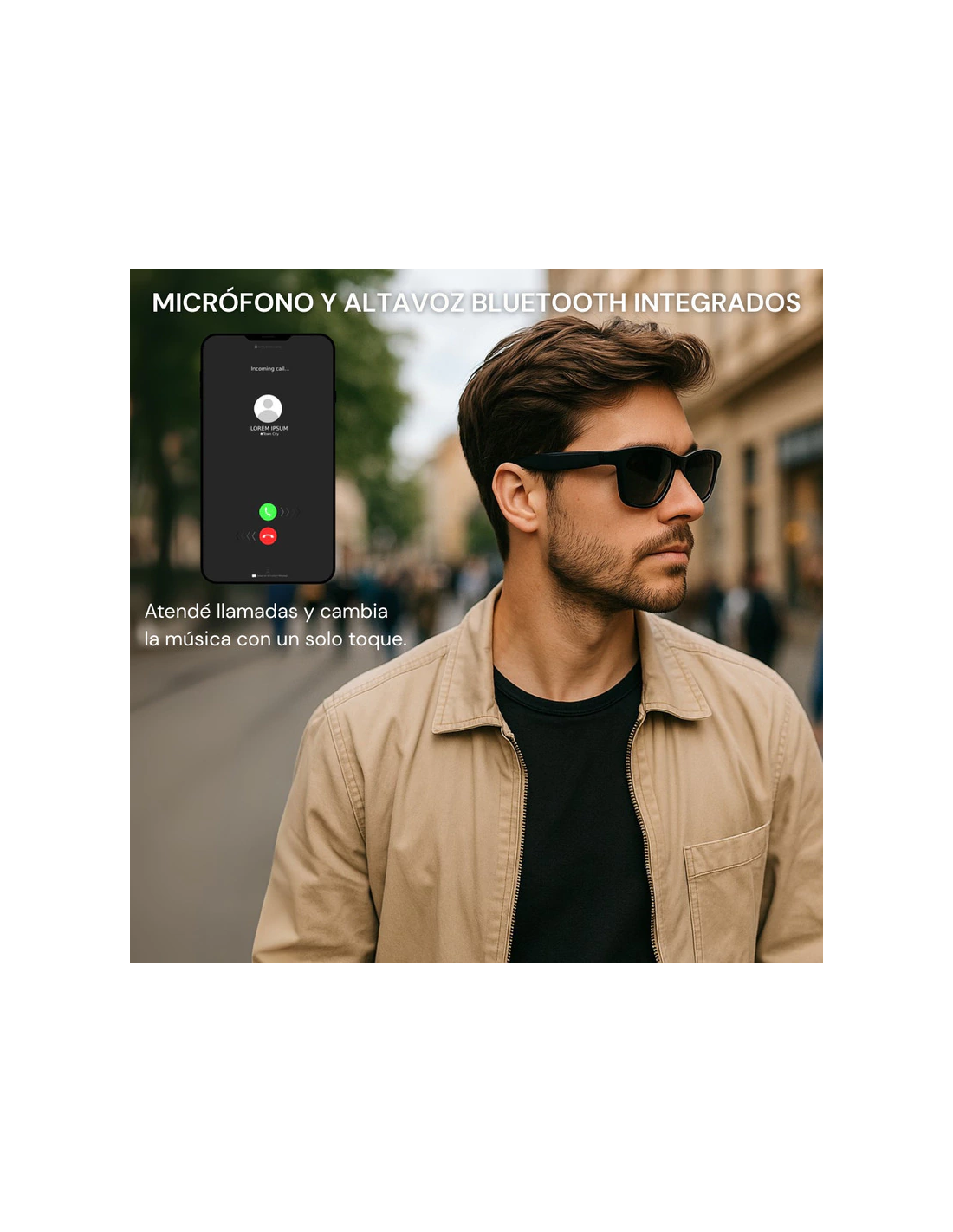 Estos lentes combinan tecnología y estilo para ofrecerte una experiencia totalmente manos libres. Conectalos a tu celular mediante Bluetooth y escuchá música, realizá llamadas o activá tu asistente de voz sin necesidad de usar auriculares.