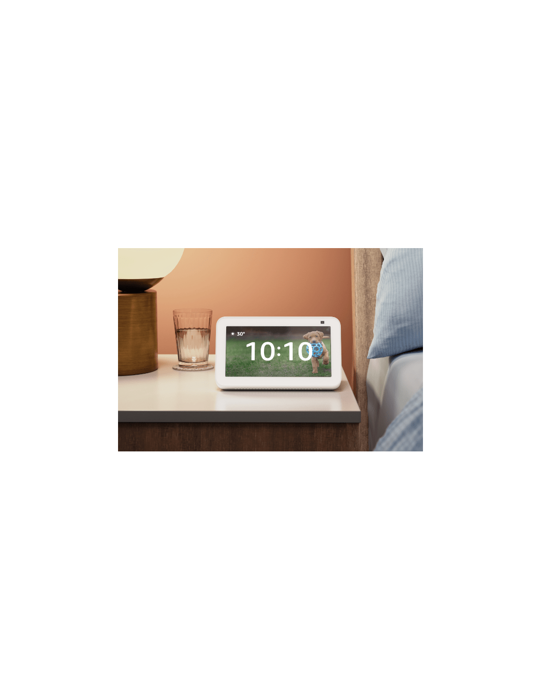 Vea su día claramente con el nuevo Echo Show 5 y Alexa listo: configure alarmas y temporizadores, consulte su calendario o las noticias, haga videollamadas con la cámara de 2 MP y transmita música o programas, todo con su voz.