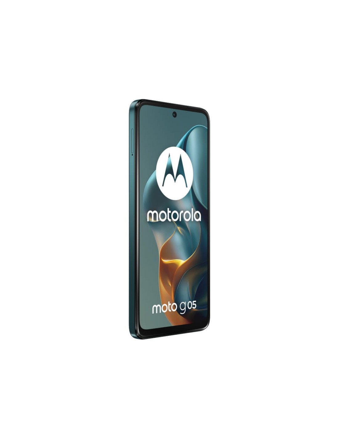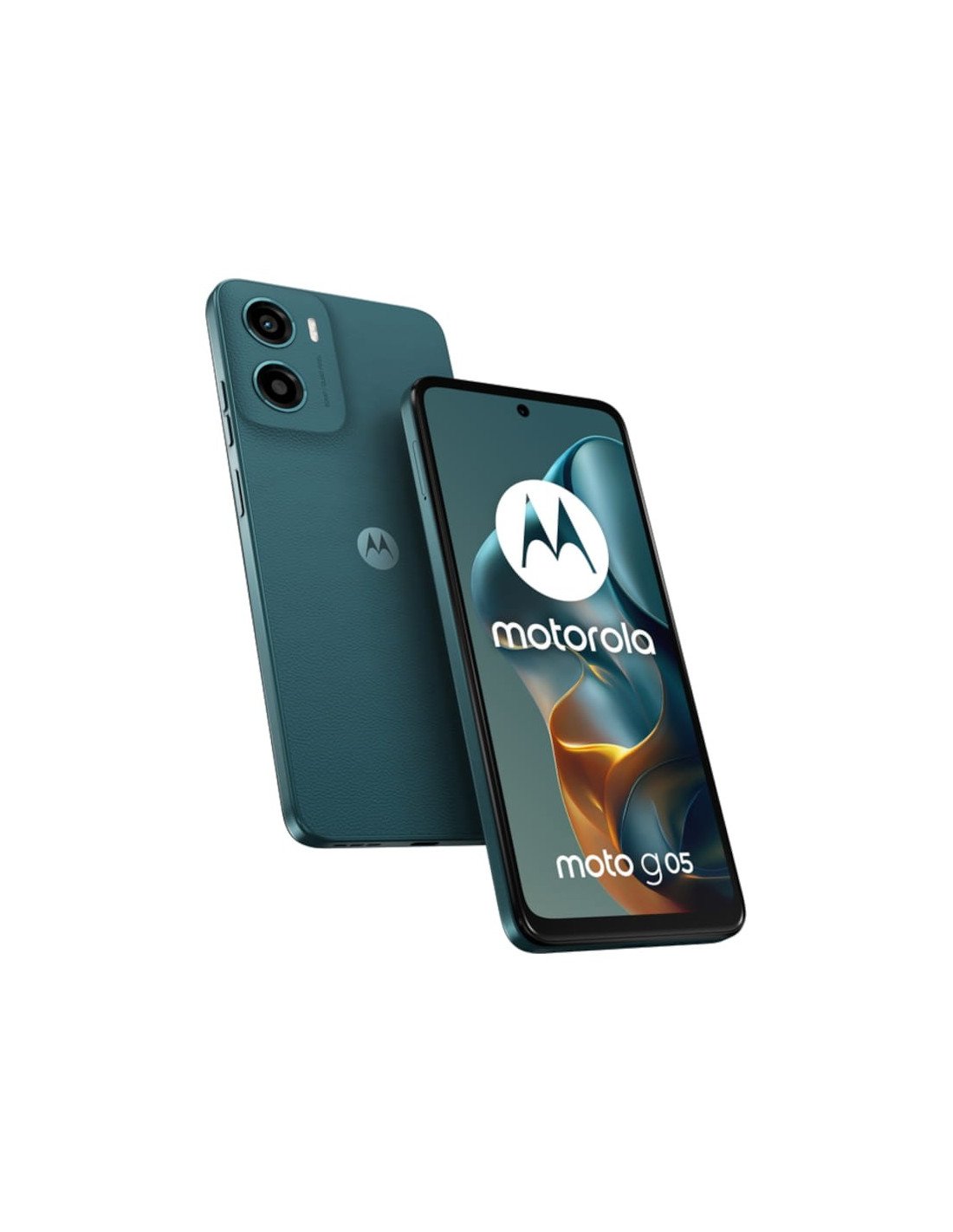 El Motorola Moto G05 tiene un acabado de cuero vegano en color Forest Green, resistente a salpicaduras, y una pantalla Corning Gorilla Glass 3 que aporta durabilidad sin sacrificar estilo.