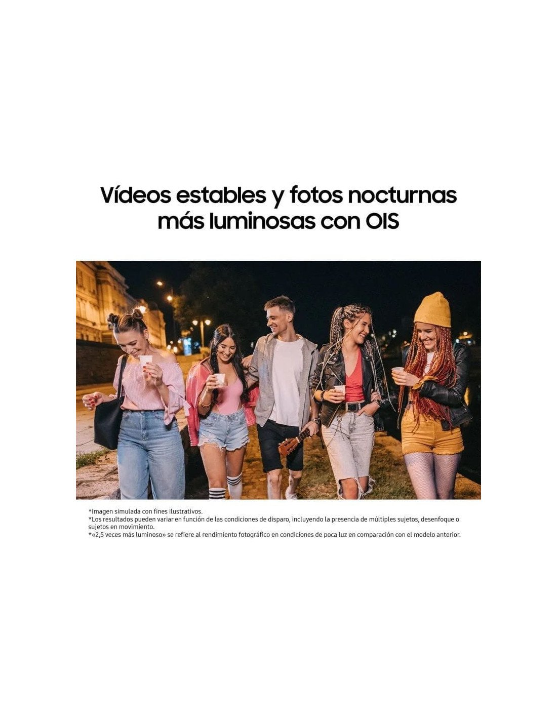 El módulo trasero aporta 50 MP con apertura f/1.8 y OIS, más ultra gran angular 5 MP y macro 2 MP. El estabilizador permite fotos más nítidas de noche y vídeo más estable; la frontal de 13 MP incorpora retoques IA automáticos.