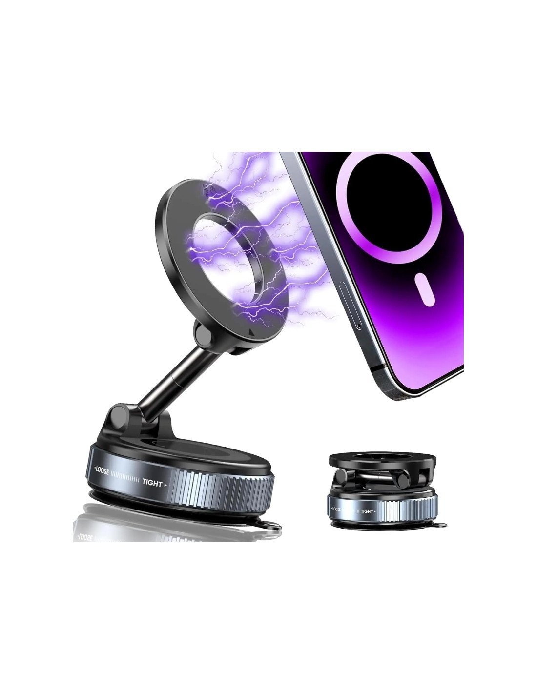 Nuestro soporte magnético utiliza un brazo hecho de aleación de zinc: delicado, resistente y duradero. Podes ajustarlo en el ángulo que necesites, con una rotación de 360 grados.