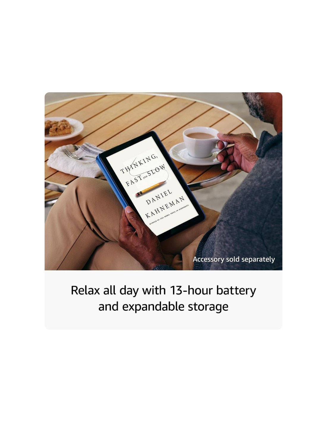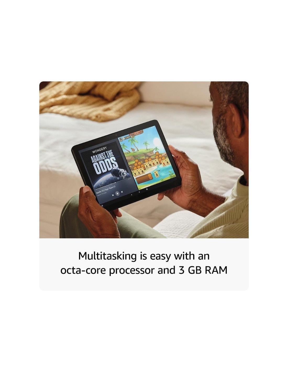 Delgada, ligera, duradera: sumérgete en el entretenimiento desde cualquier lugar con un diseño ligero y duradero y una vidrio reforzada con vidrio de aluminosilicato. Según una prueba de impacto, la tablet Fire HD 10 es 2.7 veces más duradera que la Samsung Galaxy Tab A8 (2022).
